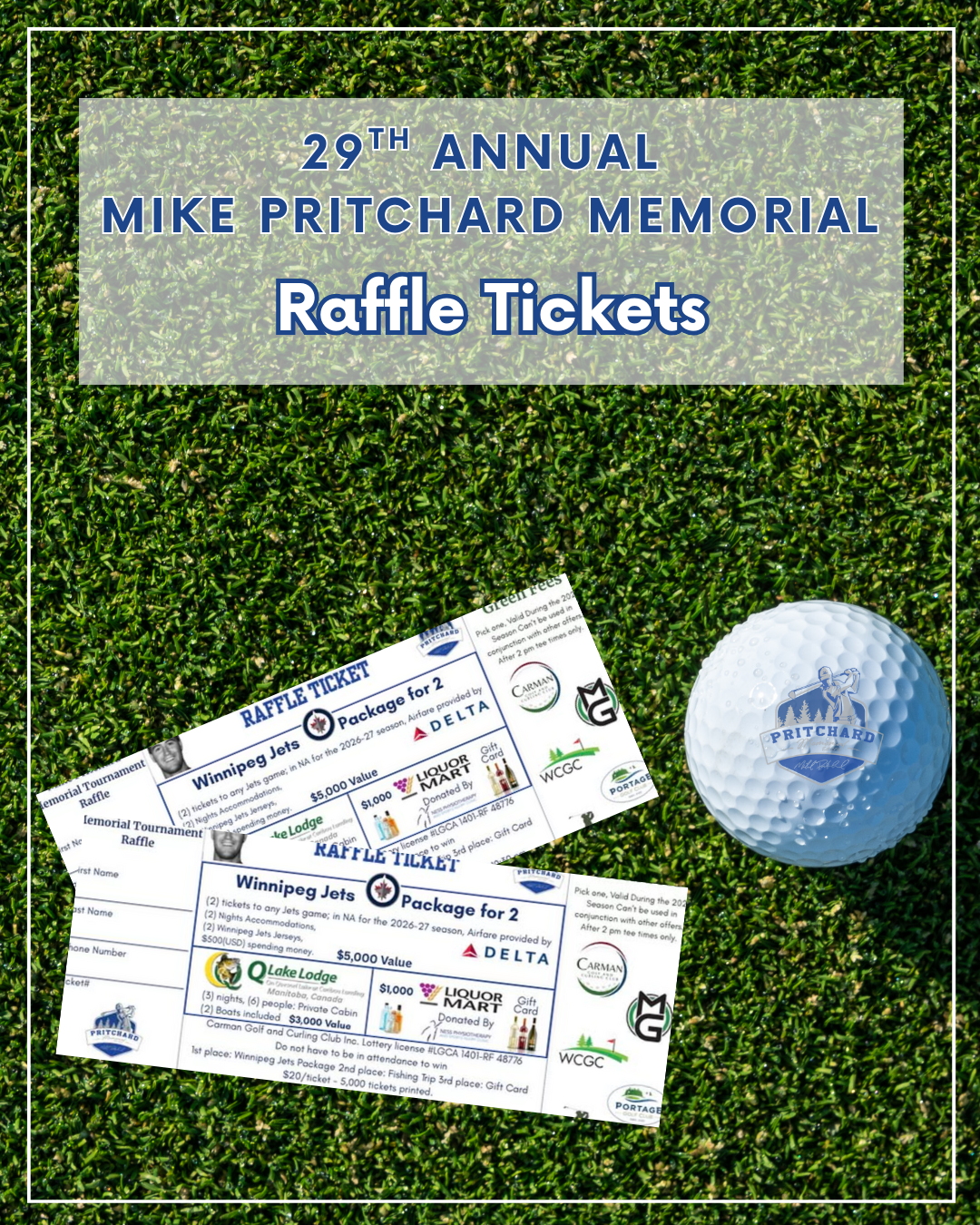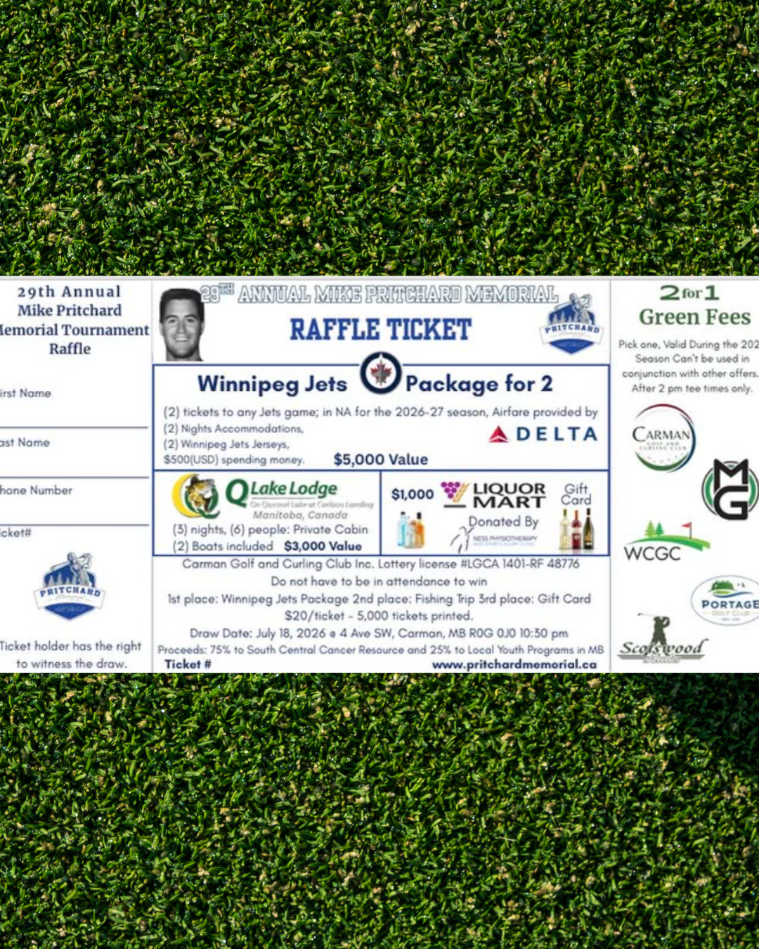 Each raffle ticket features three prizes valued at a total of $9,000. Each $20 ticket also includes a 2-for-1 green fee offer at five golf courses: Minnewasta, Carman, Winkler, Portage, and Scotswood. A total of 5,000 tickets have been printed.